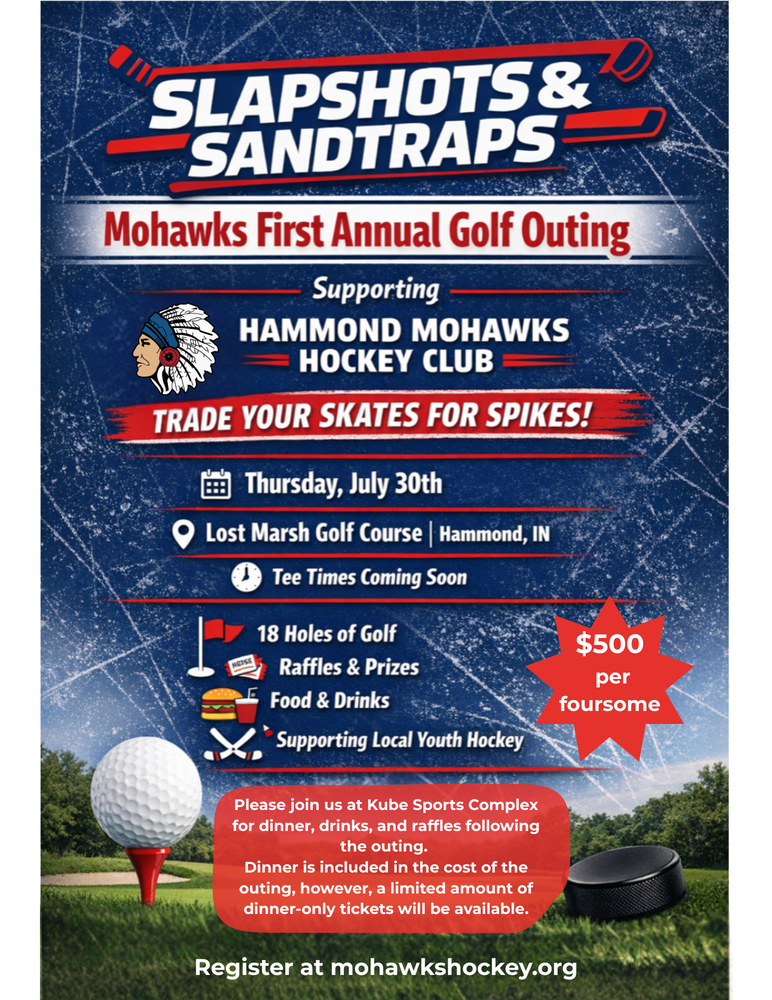 The Mohawks will be hosting our 1st annual golf outing, Slapshots & Sandtraps on Thursday, June 30th at Lost Marsh Golf Course in Hammond.