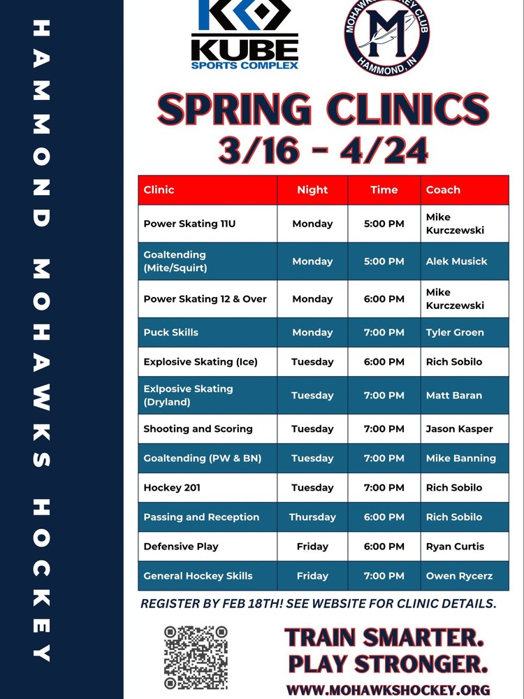 Clinics begin March 16th and run through April 24th