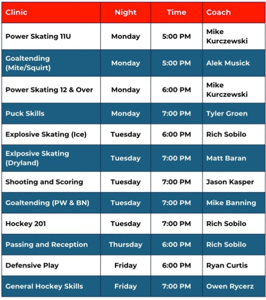 NIHL/NWHL League, Tournament Team or Mohawks Clinics